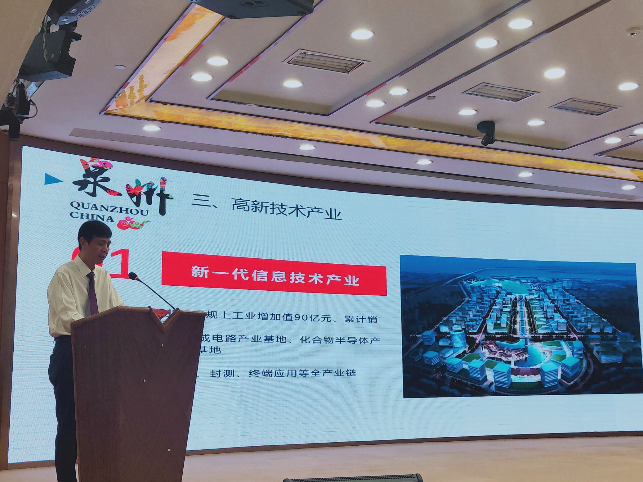 泉州半导体高新技术产业园区管委会蔡映辉进行推介 活动当天,泉州市发改委、泉州半导体高新技术产业园区管委会相关负责人先后作重点推介了半导体、智能装备、数字经济等项目,并解读了泉州的一系列招商优惠政策。现场还举行了泉州市政府与中信重工机械股份有限公司《战略合作框架协议》签约仪式。 泉州市发展和改革委员会主任陈文堃表示,当前,泉州正举全市之力推进“五个泉州”建设,泉州市委、市政府正全力营造创新创业创造的营商环境,促进实业投资和技术创新双轮驱动,推动“产城人”融合发展,加快高新板块建链、重化板块补链、传统板块强链,打造“12345”现代化经济体和“54321”现代产业集群。持续巩固扩大传统产业领先优势,持续培育壮大半导体、新材料、石墨烯等高新产业。欢迎各位企业家朋友把握家乡发展的大好历史机遇,参与融入到泉州高质量发展的新一轮大潮中来,拓展事业发展新空间新高度。 据悉,本届世界闽商大会由中共福建省委、福建省人民政府、中华海外联谊会和中华全国工商业联合会共同主办,以“凝心凝智凝力,创新创业创造”为主题,吸引了来自102个国家和地区的闽商精英和各界嘉宾1800余人汇聚榕城,同叙乡情,共谋发展。(周晓磊) |