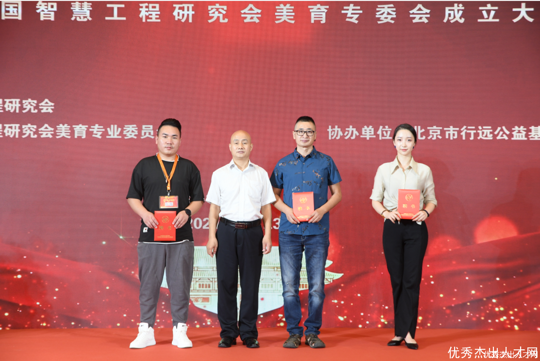 中国智慧工程研究会副会长王双全为刘海波、王国斌、王涛颁发中国智慧工程研究会美育专业委员会副主任证书
